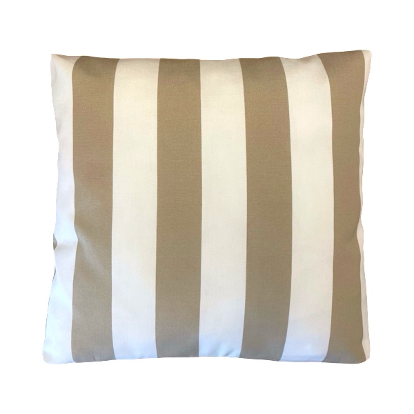 Colour: Sand and white stripe. Size: 40×40 cms with 5cm boxed corners. Cushion inner included.